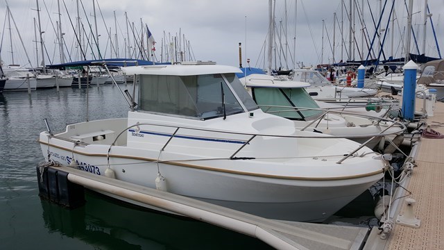 Bateau pêche-promenade BENETEAU ANTARES 620 année 1998 avec moteur VOVLO diésel 50CV, 1000H de marche. Entretien annuel . sortie mai 2016 pour révision et carénage. Taud de soleil état de neuf. taud de fermeture cabine. Sondeur de pêche HUMMINBIRD et équipement de pêche. . 2 batteries et chargeur.